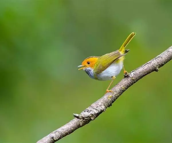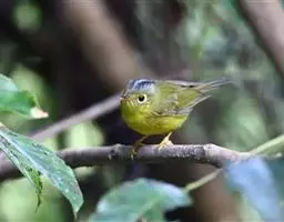 黑脸鹟莺:体长10厘米,是有特色的体小而多彩的莺鸟。粗眉纹,颏、喉及尾下覆羽黄色,脸罩黑,…