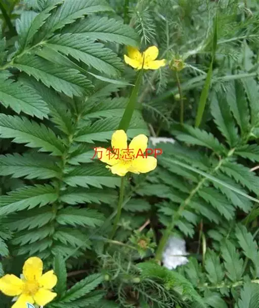 鹅绒委陵菜,多年生匍匐草本,叶正面深绿,背后如羽毛,密生白细绵毛,宛若鹅绒。块根纺锤形或球形,棕褐色。茎细弱,紫红色。节上生不定根。不整齐羽状复叶。花单生叶腋,被柔毛;花瓣5,黄色,倒卵形或近圆形,全缘。瘦果褐色,卵圆形。花果期5-9月。属于喜光耐阴性植物,气候适应性广泛。