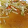 3、留足够的底油,下洋葱和蒜爆香,再放入所有酱料和火锅底料,加少量开水让火锅调料化开。