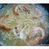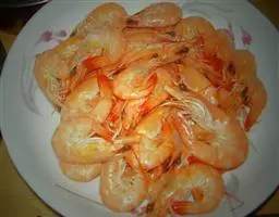2、锅里油烧热,下鲜虾变红后,盛出。