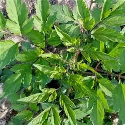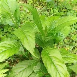 叶对生,无毛,叶柄有狭翅,椭圆形或长椭圆状披针形,边缘有锯齿。上部叶3深裂或不裂,茎顶部的叶小,有时不分裂;茎中、下部的叶片羽状分裂或深裂,裂片3~5,卵状披针形至狭披针形,边缘疏生不整齐大锯齿,顶端裂片通常比下方者大,叶柄有翼。