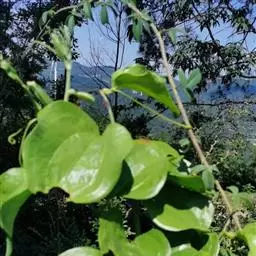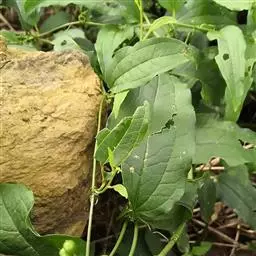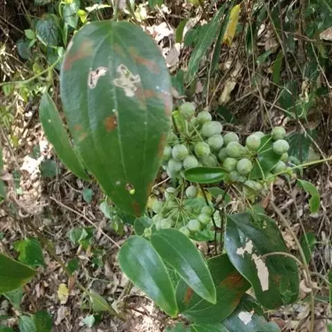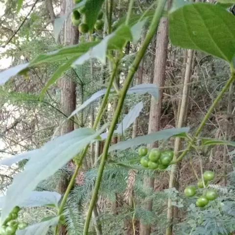 菝葜,菝葜科菝葜属 多年生藤本落叶攀附植物,茎干较粗,嫩白色,呈圆柱形,表面带有小刺;叶子较大,…