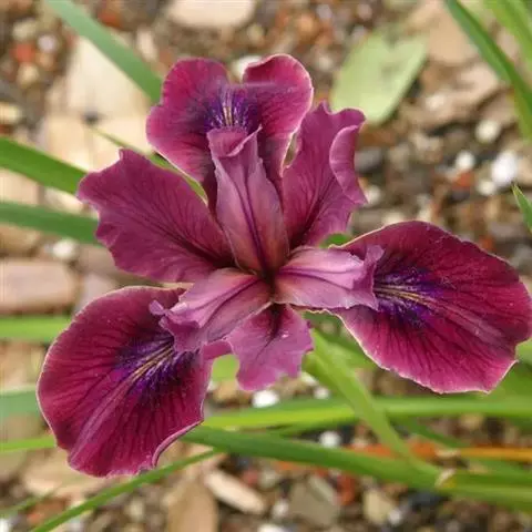 亮叶鸢尾为常绿多年生草本植物。叶面光滑、亮绿色,花茎扁平叶状。原产于巴西。