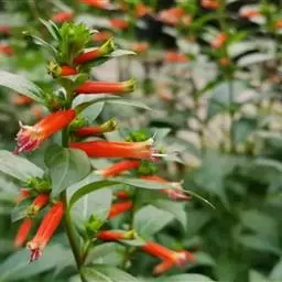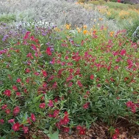 萼距花是千屈菜科、萼距花属植物。灌木或亚灌木状,高30-70厘米,直立,粗糙,被粗毛及短小硬毛,…