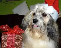 北京犬在室温高的环境中生活,易脱毛。在北京犬的饲养管理中,要给予足够的营养。每天除喂适量的蔬菜、面包、饼干等素食外,还需l00~200克的瘦肉,小虾、鱼肉等。素食中最好加点奶粉、钙粉和复合维生素研碎的粉末。 下图为西藏獚犬,嘴部长,无八字褶,与京巴有明显区别: