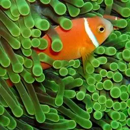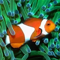 眼斑双锯鱼(Amphiprion ocellaris)又称公子小丑,公仔小丑,为鲈形目、雀鲷科、双锯鱼属一种热带海水鱼类。眼斑双锯鱼分布于西太平洋印度尼西亚、泰国、菲律宾、新加坡及澳大利亚西北部,活动于珊瑚礁区,觅食各类有机物碎屑及小型猎物,与海葵有着明显的伴生关系,平日躲藏于海葵中。为一种著名观赏鱼。