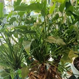为多年生常绿草本植物。茎长约150cm,有气生根。叶片羽状分裂 ,羽片再次分裂,有平行而显著的脉纹。花单性,佛焰苞肉质,白色或黄色,肉穗花序直立,稍短于佛焰苞。