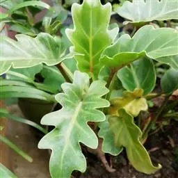 常见叶子问题及原因金钻蔓绿绒出现叶片黄化的原因主要有温度不适、湿度较低、光照不适、施肥过量、浇水太勤、病虫害危害所致。