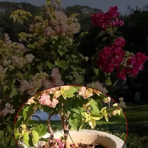 5.盆土缺铁,出现焦褐斑干枯。