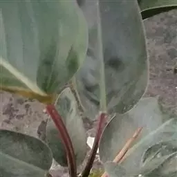 4.盆土缺镁,由下至上叶片边缘和中部失绿变白;