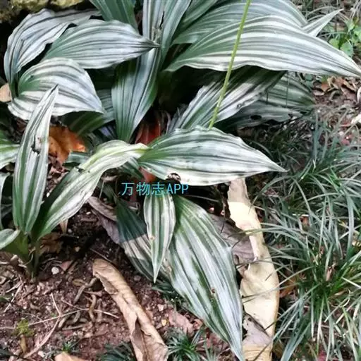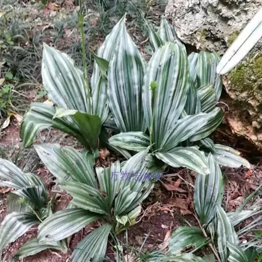 银带虾脊兰(学名:Calanthe argenteo-striata C. Z. Tang et S. J. Cheng):植株无明显的根状茎。假鳞茎粗短,近圆锥形,粗约1.5厘米,具2-3枚鞘和3-7枚在花期展开的叶。叶上面深绿色,带5-6条银灰色的条带,椭圆形或卵状披针形。花葶从叶丛中央抽出,密被短毛;总状花序长7-11厘米,具10余朵花;花张开;14片和花瓣多少反折,黄绿色;花瓣近匙形或倒卵形,比萼片稍小,先端近截形并具短凸,具3条脉,无毛;唇瓣白色,与整个蕊柱翅合生,比萼片长,基部具3列金黄色的小瘤状物,3裂。花期4-5月。