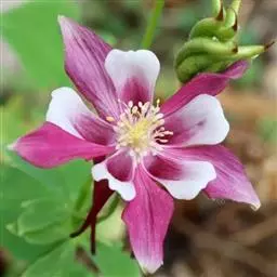 花瓣近匙形或倒卵形,比萼片稍小,先端近截形并具短凸,具3条脉,无毛;唇瓣白色,与整个蕊柱翅合生,比萼片长,基部具3列金黄色的小瘤状物,3裂;侧裂片近斧头状,长和宽均7毫米,先端近圆形;中裂片深2裂;小裂片与侧裂片等大;距黄绿色,细圆筒形,长1.5-1.9厘米,向末端变狭,外面疏被短毛;蕊柱白色,长约5毫米;蕊喙2裂,轭形;药帽白色、前端收狭,先端喙状;花粉团狭倒卵球形或狭棒状,近等大,长约2毫米,具短的花粉团柄,粘盘近方形。花期4-5月。