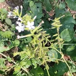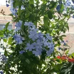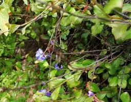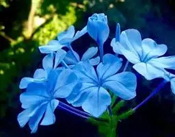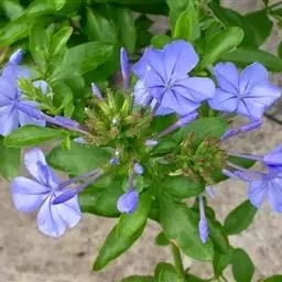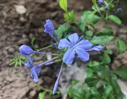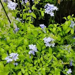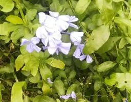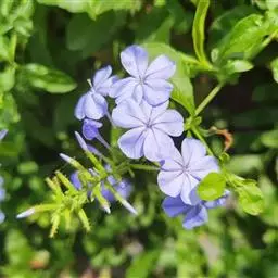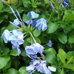 蓝花丹(学名:Plumbago auriculata Lam.)是白花丹科白花丹属植物,常绿柔弱半灌木,上端蔓状或极开散,高约1米或更长,除花序外无毛,被有细小的钙质颗粒。叶薄,通常菱状卵形至狭长卵形。穗状花序约含18-30枚花;总花梗短,通常长2-12毫米。果实未见。花期6-9月和12-4月。