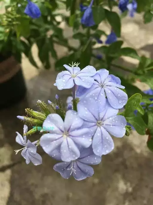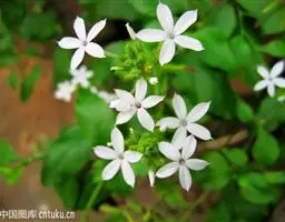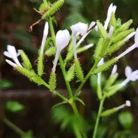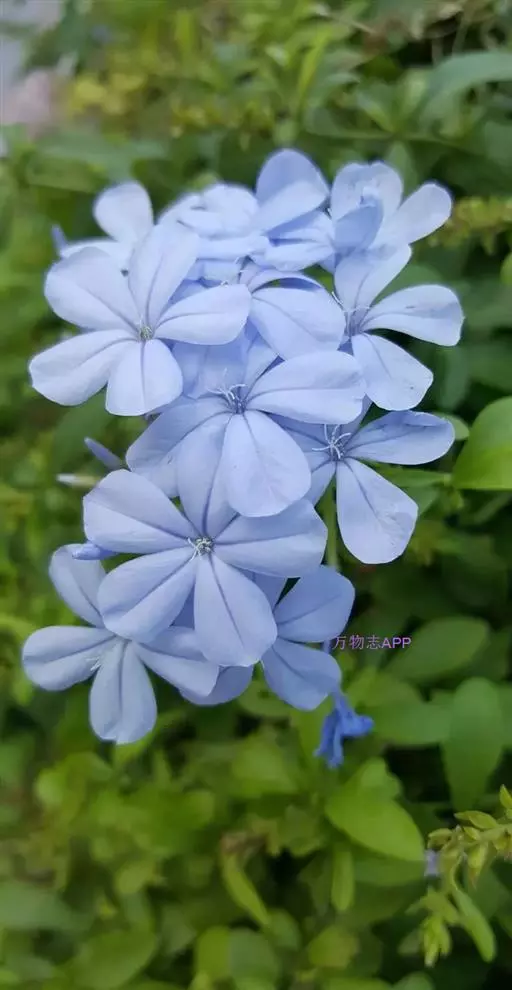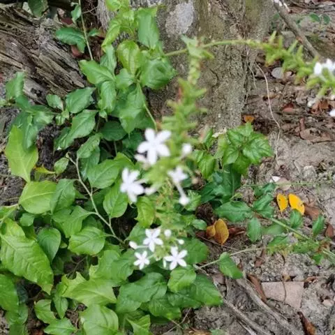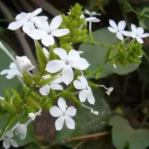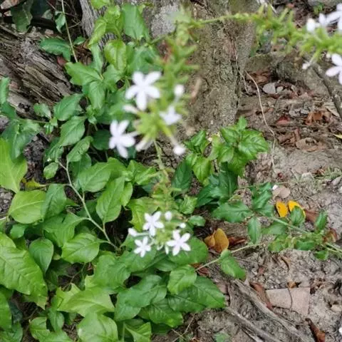 雪花丹(Plumbago auriculataLam. f. alba(Pasq.) Peng):该变型的花冠呈白色。 蓝花丹