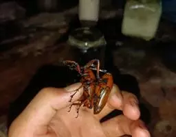 斗米虫为锈色粒肩天牛的幼虫,锈色粒肩天牛主要危害槐树Sophora japonica,…