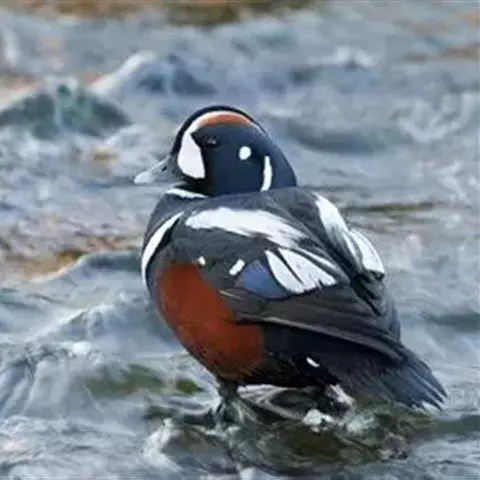 绿翅鸭是小型鸭类,体长37厘米,体重约0.5千克。嘴脚均为黑色。雄鸟头至颈部深栗色,…