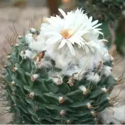 松霞是仙人掌科乳突球属的多年生肉质植物。单个球体小,呈圆筒状,暗绿色,疣状突起小,呈圆形,刺座无毛,…