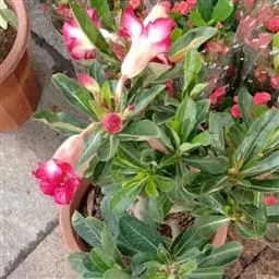 因为三棱箭的砧木较长,故直接将接穗拿下、留下长的砧木。当时是12月中旬,砧木表面吹干后的十来天就发出新根。以加鸽粪沤制过的煤渣份混合後上盆栽植的。上盆后置于朝南的阳台上,第二年,随著植株顶上绒毛越长越密,不断开出纯白色的小花。在每年换盆时见到用中等颗粒的培养土栽植的落地接穗根系较密,而且穿过盆底的排水孔。