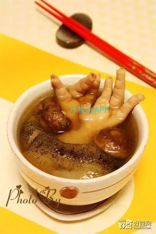 鸡爪8个,香菇10克,冬笋15克,火腿15克,熟鸡油10克,精盐2克,味精1克,绍酒10克,葱姜汁5克,鸡汤1000克。