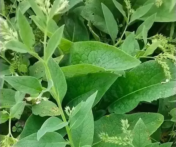 聚合草(Symphytum officinale L),别名爱国草、肥羊草、友益草、友谊草、紫根草、康复力、外来聚合草、西门肺草、紫草根。丛生型多年生草本,高30-90厘米,全株被向下稍弧曲的硬毛和短伏毛。生于山林地带,为典型的中生植物。原产苏联欧洲部分和高加索,中国于1973年朝鲜将其作为珍贵礼物送给中国,从此引种栽培。聚合草适应性广,产量高,利用期长,适口性好,是优质高产的畜禽饲料作物,其也有有较高的营养价值,可作药用,也有一定的观赏价值,
