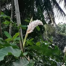 密苞山姜是姜科,山姜属多年生草本植物,株高可达1.5米。叶片椭圆状披针形,顶端渐尖,并具细尾尖,基…