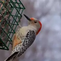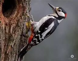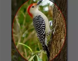 红腹啄木鸟成年雄鸟头项有红帽,翅膀和上体是黑白相间的斑纹状羽毛,腹部有一片红羽毛。头亦大,但颈较长,…