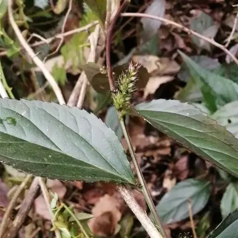 柔毛,边缘有尖锯齿。夏季开花;德状花穗,无柄,近球形,长约1.2厘米;花紫红色。但茎无毛或疏生短毛,花序圆筒状,长1.5~3.5厘米。民间常混用。