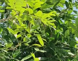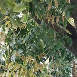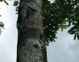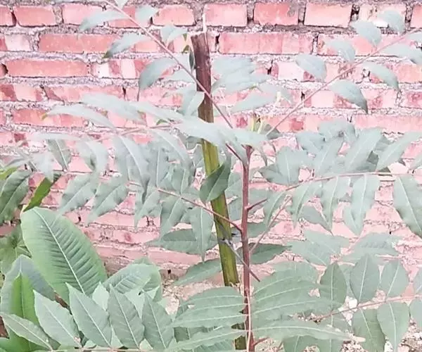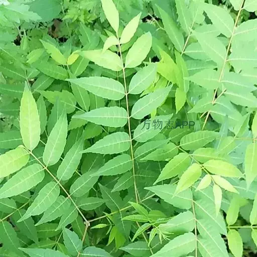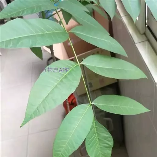 乔木;树皮粗糙,深褐色,片状脱落。叶具长柄, 偶数羽状复叶,长30-50厘米或更长;小叶16-20,对生或互生,纸质,卵状披针形或卵状长椭圆形,长9-15厘米,宽2.5-4厘米,先端尾尖,基部一侧圆形,另一侧楔形,不对称,边全缘或有疏离的小锯齿,两面均无毛,无斑点,背面常呈粉绿色,侧脉每边18-24条,平展,与中脉几成直角开出,背面略凸起;小叶柄长5-10毫米。