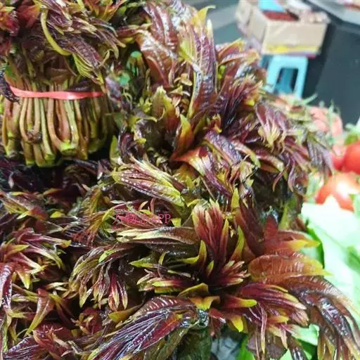 香椿被称为“树上蔬菜”,是香椿树的嫩芽。每年春季谷雨前后,香椿发的嫩芽可做成各种菜肴。它不仅营养丰富,且具有较高的药用价值。香椿叶厚芽嫩,绿叶红边,犹如玛瑙、翡翠,香味浓郁,营养之丰富远高于其它蔬菜,为宴宾之名贵佳肴。