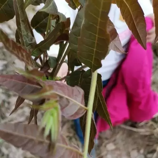 摘香椿 香椿品种很多,根据香椿初出芽苞和子叶的颜色不同,基本上可分为紫香椿和绿香椿两大类。