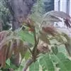 白粉病产区均有分布,主要危害香椿叶片,有时也侵染枝条。发病初期在叶面、叶背及嫩枝表面形成白色粉状物,后期逐渐扩展形成黄白色斑块,白粉层上产生初为黄色,逐渐转为黄褐色至黑褐色大小不等的小粒点,即病菌闭囊壳。严重时布满厚层白粉状菌丝,影响树冠发育和树木的生长。严重时叶片卷曲枯焦,嫩枝染病后扭曲变形,最后枯死。
