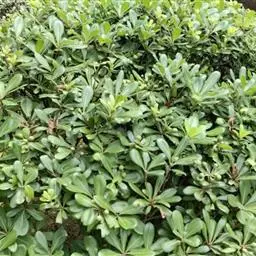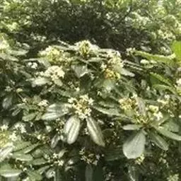 海桐 海桐枝叶繁茂,树冠球形,下枝覆地;叶色浓绿而又光泽,经冬不凋,初夏花朵清丽芳香,入秋果实开裂露出红色种子,也颇为美观。