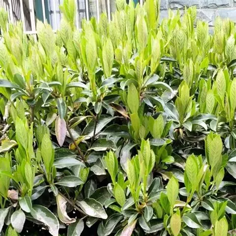 叶革质,倒卵形,先端圆,簇生于枝顶呈假轮生状,经长期栽培,雄蕊常表现退化而不育,结实率亦低。叶光洁浓密,萌芽力强,耐修剪,易造型,广泛用于灌木球、绿篱及造型树等。