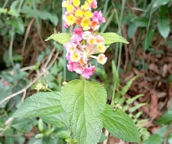 马缨丹(学名:Lantana camara L.)是马鞭草科马缨丹属植物。直立或蔓性的灌木,高1-2米,有时藤状,长达4米;茎枝均呈四方形。单叶对生,揉烂后有强烈的气味,叶片卵形至卵状长圆形。花序直径1.5-2.5厘米;花序梗粗壮,长于叶柄;苞片披针形,长为花萼的1-3倍,外部有粗毛。果圆球形,直径约4毫米,成熟时紫黑色。全年开花。
