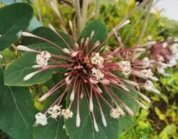 花序直径1.5-2.5厘米;花序梗粗壮,长于叶柄;苞片披针形,长为花萼的1-3倍,外部有粗毛;花萼管状,膜质,长约1.5毫米,顶端有极短的齿;花冠黄色或橙黄色,开花后不久转为深红色,花冠管长约1厘米,两面有细短毛,直径4-6毫米;子房无毛。果圆球形,直径约4毫米,成熟时紫黑色。全年开花。