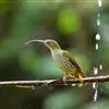 长嘴捕蛛鸟,小型鸟类,体长14-16厘米。嘴长而尖向下弯曲。上体橄榄绿色,眼先和短眉灰白色,…