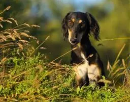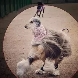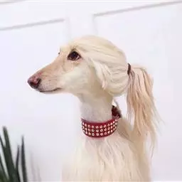 阿富汗猎犬全身披丝绢状的长毛,毛色鲜艳,呈多种颜色,背中线附近毛短,…