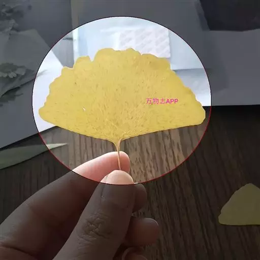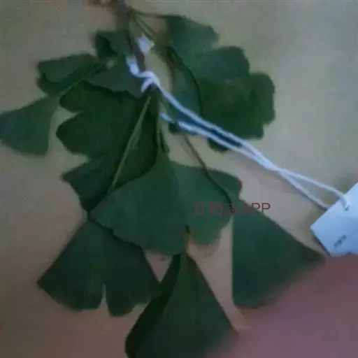 叶互生,在长枝上辐射状散生,在短枝上3~5枚成簇生状,有细长的叶柄,扇形,两面淡绿色,无毛,有多数叉状并列细脉,在宽阔的顶缘多少具缺刻或2裂,宽5-8(-15)厘米,具多数叉状并歹帕细脉。在长枝上散生,在短枝上簇生。它的叶脉形式为“二歧状分叉叶脉”。在长枝上常2裂,基部宽楔形,柄长3-10(多为5~8)厘米,幼树及萌生枝上的叶常较而深裂(叶片长达13厘米,宽15厘米),有时裂片再分裂(这与较原始的化石种类之叶相似),叶在一年生长枝上螺旋状散生,在短枝上3-8叶呈簇生状,秋季落叶前变为黄色。