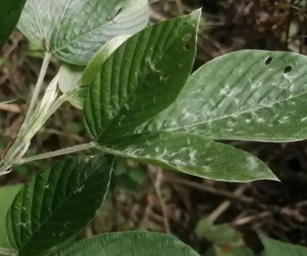 袋苗造林:营养土以有机肥料和农田肥土按1:1比例,混合均匀,装入底部有孔的塑料袋内,3.至4月每袋播种4至6粒,最后留苗1-2株,当年了月即可造林。成活率可达99%。植株生长快,到12月,平均株高1.8米,地径2厘米。第二年即可放养紫胶虫。大叶千斤拔造林株行距为1.5×2米或2×2米。