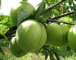 核果近球形或椭圆形,长宽几相等,直径1-3厘米,黄色、红色或黑色,微被蜡粉,具有浅侧沟,粘核;核椭圆形或卵球 形,先端急尖,浅褐带白色,表面平滑或粗糙或有时呈蜂窝状,背缝具沟,腹缝有时扩大具2侧沟。花期4月,果期8月。