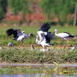 常成群活动。休息时常在水边成‘一’字形散开,长时间站立不动。性机警畏人,很难接近。常排成稀疏的单行或成波浪式的斜列飞行,两翅鼓动较快,平均每分钟鼓动186次。既能鼓翼飞翔,也能利用热气流进行滑翔,而且常常是鼓翼和滑翔结合进行。飞行时两脚伸向后,头颈向前伸直。