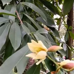 多花含笑是木兰科,含笑属小乔木,高可达20米。芽圆柱形或狭卵形,嫩枝被淡黄色绒毛,老枝无毛,叶革质…