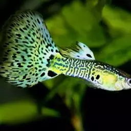 孔雀花鳉(Poecilia reticulata) ,俗名孔雀鱼,也称为凤尾鱼、彩虹花鳉、虹鳉、古比鱼等,是花鳉科花鳉属的一种热带鱼,雌雄鱼的体型和色彩差别较大,成年雄鱼身体瘦小,体长3-4厘米,体色绚烂多彩、体型优美;成年雌鱼体长5厘米左右,其尾柄及尾鳍占全身的1/3以上,各鳍均较雄鱼的短。较雄鱼体色逊色得多。