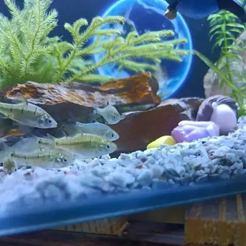对于子鱼放养的密度,缸如果是40×25×30厘米的,放养的密度在50到60尾左右。密度过大,水质不宜控制容易发病,千万注意,密度过小,缸大鱼少,子鱼不用抢食会导致兴奋度和运动缺乏,从而到影响生长速度的,这是很多玩家没注意到的地方,需要注意。一般在2周后,就会看到随着子鱼的长大,缸的密度也随着增大起来,这时候如果再不增加空间,就会影响到子鱼的生长速度了。这时就将它们移到50*40*30的缸中,给它们宽阔的空间,为它们进一步的快速发育提供更好的条件。