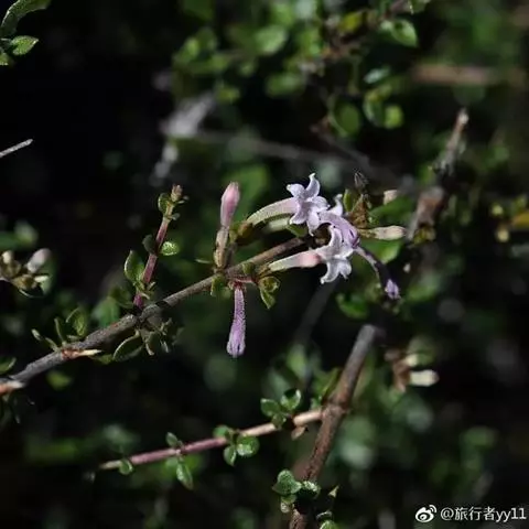 常绿灌木或小乔木,高可达7m;枝开展下垂。叶3~4枚轮生,倒卵状椭圆形至卵形,长5~8(12)cm,侧脉弧形,基部楔形,全缘,两面有毛。花冠红色或橙红色,管状,长达1.8cm,端5裂;成顶生红色聚伞花序。浆果卵球形,长约6mm,暗红或紫色。