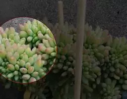 玉米石是景天科、景天属植物。多年生草本多浆植物。植株低矮丛生,多分枝。叶膨大成圆筒形、卵形或近小球形,…