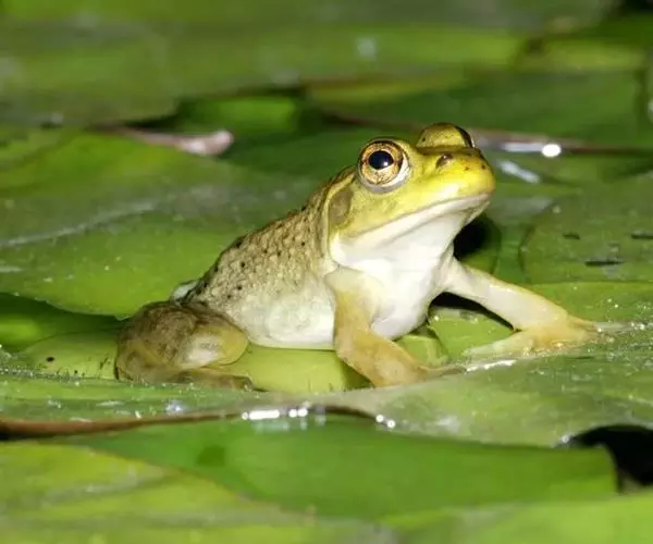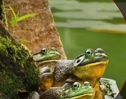 牛蛙 原产于北美,因其鸣叫声宏亮酷似牛叫而得名。1959年牛蛙从古巴引入我国,九十年代左右开始在我国被大范围推广养殖。近年来,牛蛙已成为我国水产养殖重要的名特水产品之一。