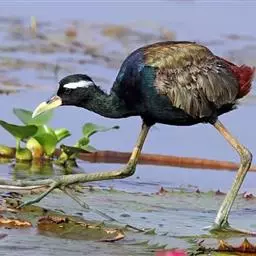 铜翅水雉雉鸻科铜翅水雉属的一种物种,是小型涉禽,体长28-31厘米。头颈、下体黑色,具金属色辉。…