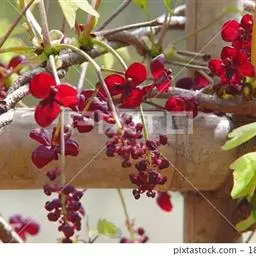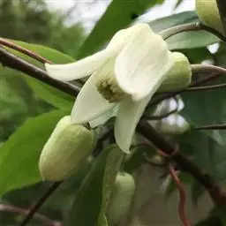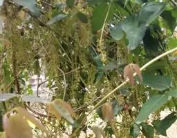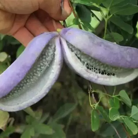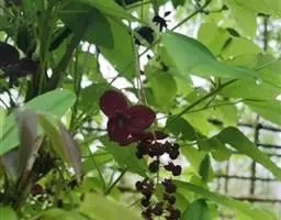 总状花序长7-9厘米,腋生或生于短枝上。雄花:萼片长2-3毫米,紫色;雄蕊6,离生,长约2.5毫米,红色或紫红色,干后褐色或淡褐色。雌花:直径约2厘米;萼片长9-12毫米,宽7-10毫米,暗紫色;心皮5-7,紫色。果长圆形,长6-8厘米,直径3-5厘米,熟时黄褐色;种子卵形,黑褐色。花期4-5月,果期6-9月。