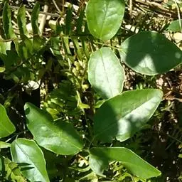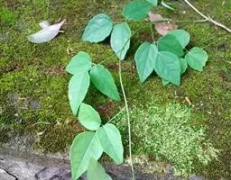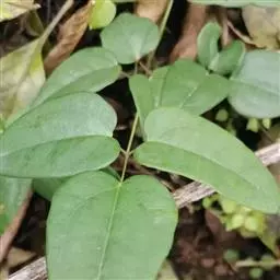 落叶木质藤本。小叶革质,卵状长圆形或卵形,长4-7厘米,宽1.5-3(5)厘米,先端狭圆,顶微凹入而具小凸尖,基部圆、阔楔形、截平或心形,边通常全缘;有时略具少数不规则的浅缺刻。